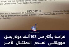 أصدرت سلطات الهجرة الأمريكية قراراً بفرض غرامة مالية مدنية كبيرة على مهاجر موريتاني بعد اعتباره…